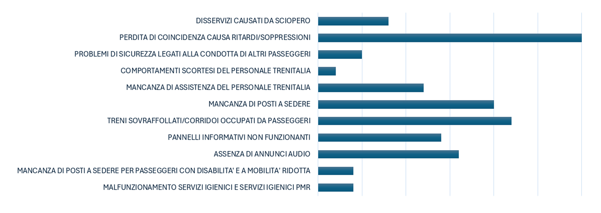 Si evidenzia che le segnalazioni sono pervenute soprattutto da utenti abituali (pendolari) che per motivi di lavoro o studio utilizzano il treno quotidianamente.